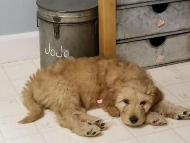 Jake and I were so impressed with Carole's love and care for her pups! We could tell that JoJo and her siblings were well looked after. They had even begun to potty train when we picked her up at 8 weeks! Carole and her family are passionate about their dogs, that was very evident as we talked with her. They were so personable, easy to talk to, and answered all the questions we had. It's obvious they take great pride in their breeding and animal care. We would highly recommend them to anyone looking for a goldendoodle puppy! We have already fallen in love with ours!